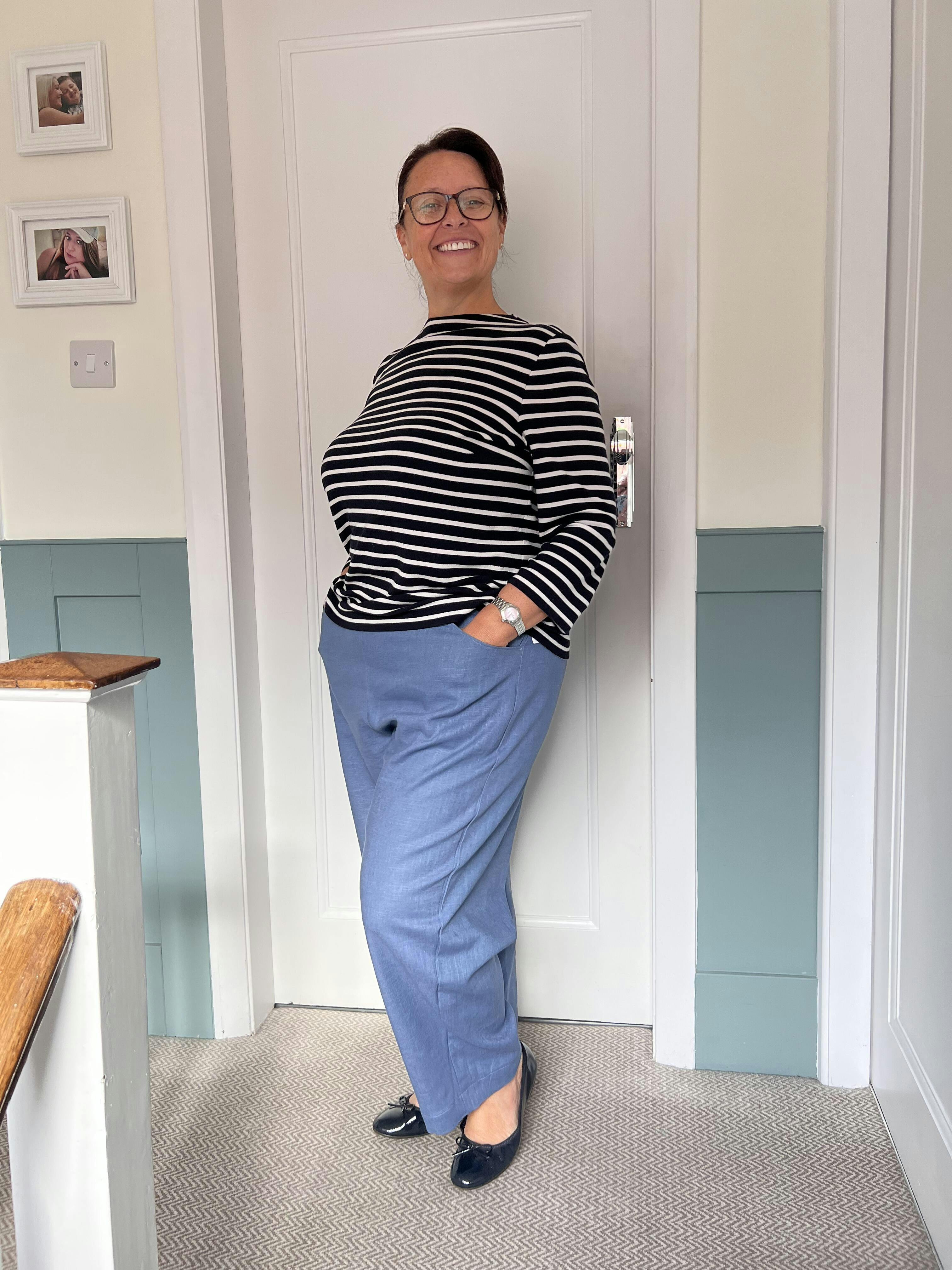 I wasn't sure how these would look on me, given that I wouldn't usually wear trousers with an elasticated waist. However, I am pleasantly surprised! I made mine in needlecord and I'm happy with the result. I contoured the side seams in slightly to get a better fit over the hips. As I am 5'8" tall, I added 4cm to the leg length, which was about right to create ankle skimmers. As usual, the instructions were very clear. I'm planning another pair in the spring!