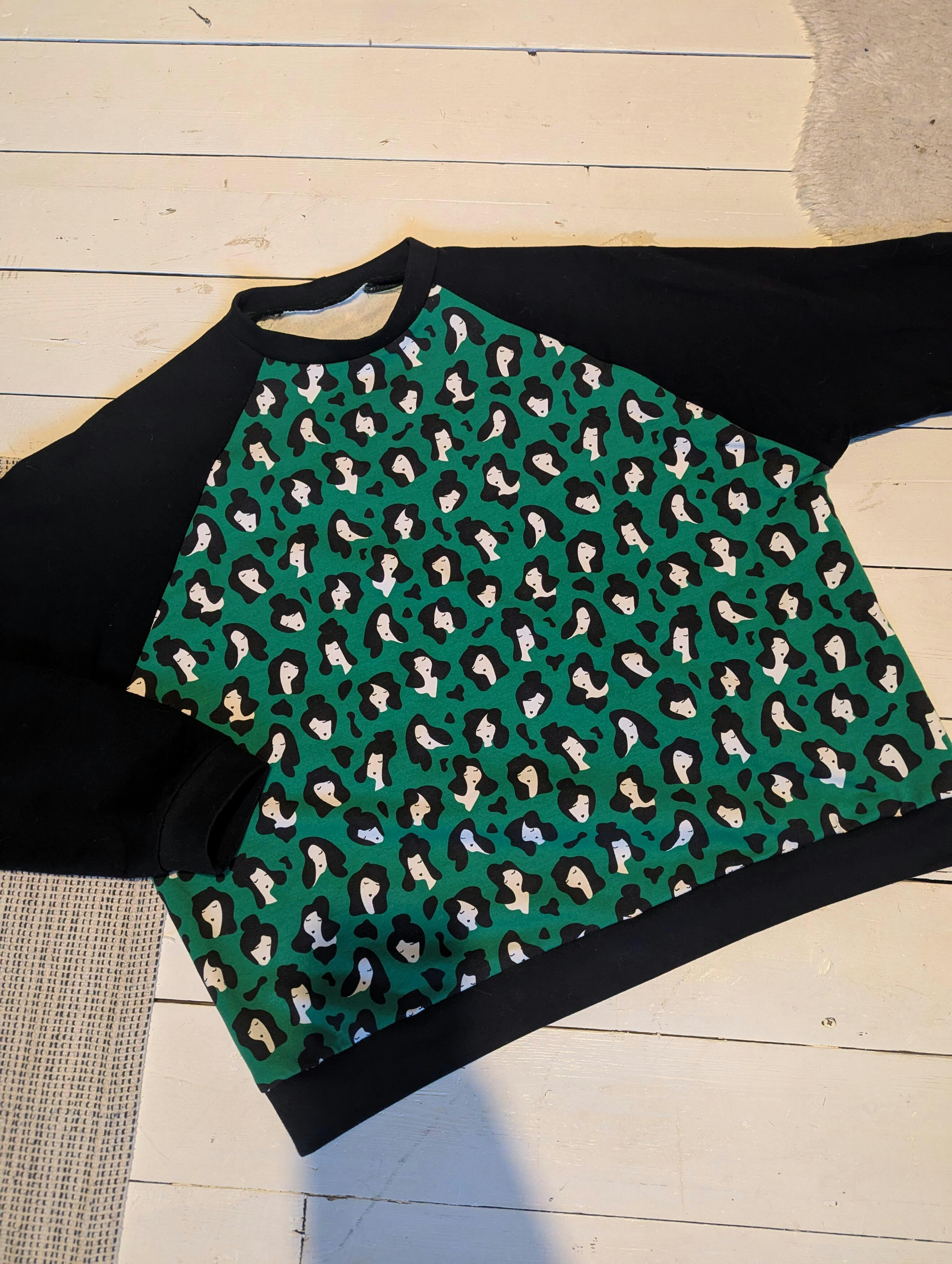 This is the first sweatshirt I've made entirely on my overlocker! I was amazed how quickly and easily it came together. The instructions were clear and easy to follow. I had to add a little extra length to the body and sleeves -( I'm 5'8".) I went with a two-tone cropped variation and it has a lot of impact - I love it!
